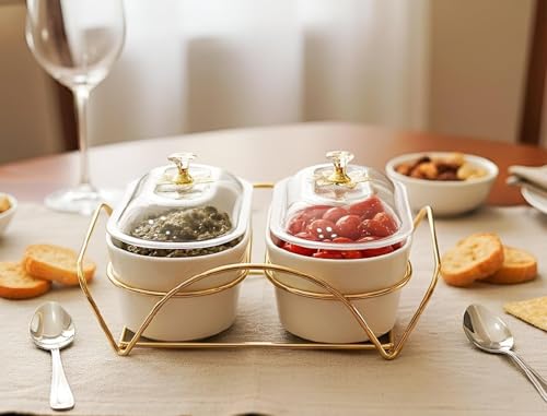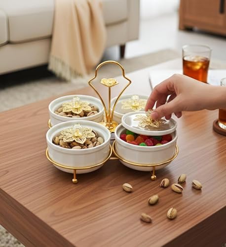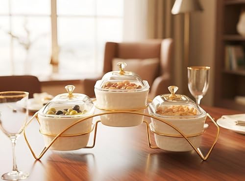 Generic - A dish of introducing appetizers - a high-quality seramic plate with an alloy holder and a removable cover, perfect for snacks, sauce, fruit, and sweets in a clean design. (option2)