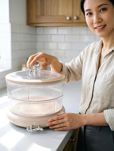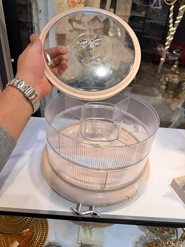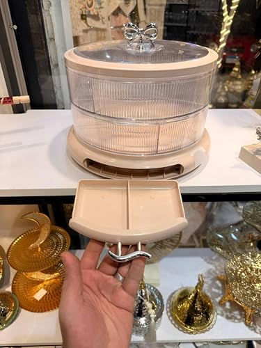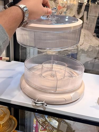 Generic - صندوق تخزين طعام اكريليك مقسم بقاعدة دوارة - تصميم مزدوج الطبقات مع صينية تقشير مخصصة للوجبات الخفيفة النظيفة والمنظمة