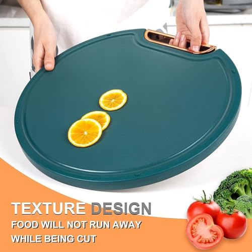- ✪【Perfect Sizes & Weight】Large plastic cutting board size is 14.57 x 13.00 inches (37 x 33 cm), Weight: 800g, non-absorbent, perfect for dishwasher use. You can clean it thoroughly after each use. ✪【Swivel Handle】The rotating handle can quickly flip the cutting board upside down, then remove the water stains and stains, it is very convenient to use and a good home kitchen helper.
