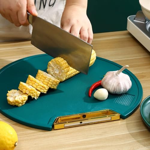 Generic - A double-sided circular cutting board and a designated place for chopping garlic - equipped with a movable handle for easy control