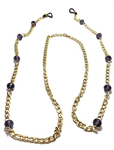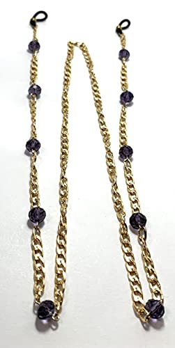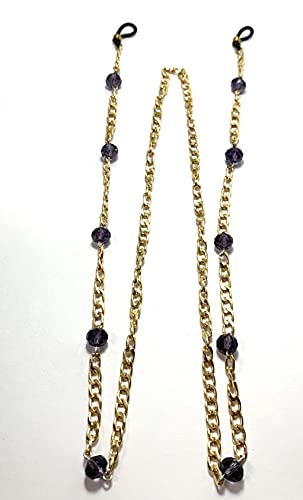 Generic - A gold eyeglasses chain that does not rust with crystal beads purple color