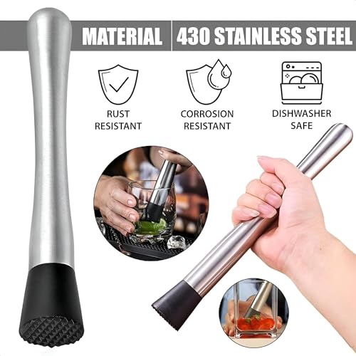 Generic - اداة تحضير المشروبات من الستانلس ستيل عالي الجودة، مقاس 10 انش، تتميز بمقبض طويل، مصممة لسحق الثلج بدون مجهود، لصنع الكوكتيلات الرائعة ومشروبات الفاكهة. (قطعة واحدة)