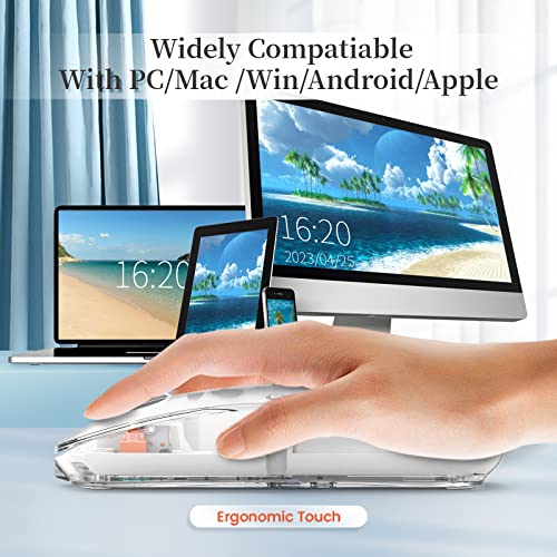 A.JAZZ - A.JAZZ Wireless Bluetooth5.1&2.4G Mini Lightweight Mouse,Transparent Clear Cool,Rechargeable Silent Computer Mice,Nano USB C Receiver,LED Battery Magic Silm for Office/PC/Mac/Laptop/Apple/ipad(White)