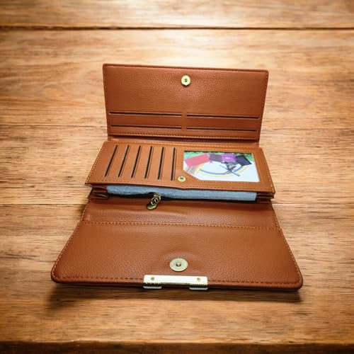 Generic - A luxurious multifunctional fold Wallet for Women 1 Zipper Large Capacity carry many cards, Hand New Korean design Phone Wallet card holder, handbag premium quality (Brown)