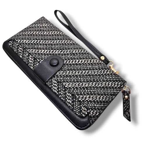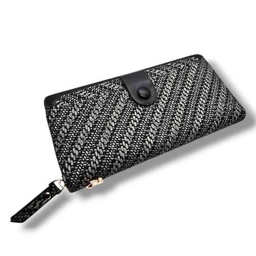 Generic - A luxurious multifunctional fold Wallet for Women 1 Zipper Large Capacity carry many cards,with external card holder, Phone,Hand strap, handbag premium quality (Striped Black)
