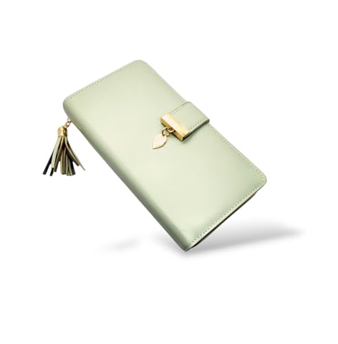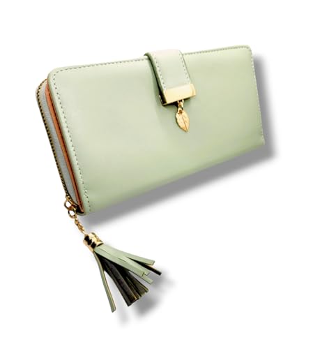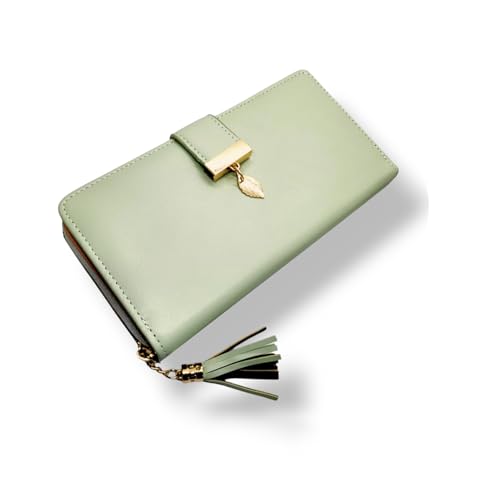 Generic - A luxurious multifunctional Wallet for Women 1 Zipper Large Capacity carry many cards, Hand Flagship New Korean design CellPhone Wallet card holder, handbag, premium quality (Ment Green flower 1)