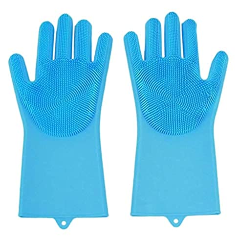 Other - A Pair Magic Silicone Scrubber Rubber Cleaning Gloves Dusting|Dish Washing|Pet Care Grooming Hair Car|Insulated Kitchen Helper blue