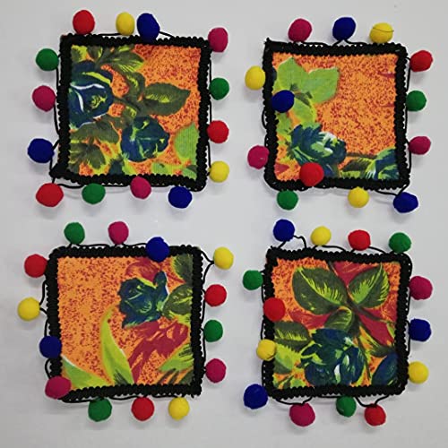Generic - مجموعة من 4 قاعدة كوب رائعة صناعة يدوية من القماش القطني الملون المزينة بشراشيب كوستر من اكسسوارات المطبخ و أواني الطعام و ديكورات المنزل تصلح مع أكواب و أدوات الشرب