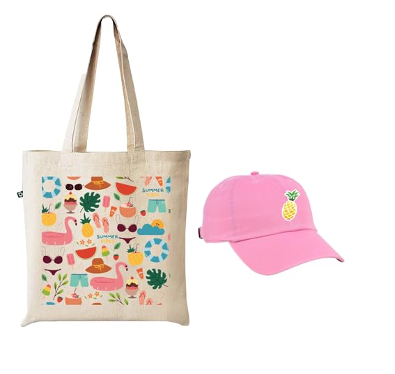 - A set of a tote bag and a cap rose 1 suitable for trips and summer vacations in distinctive shapes and colors