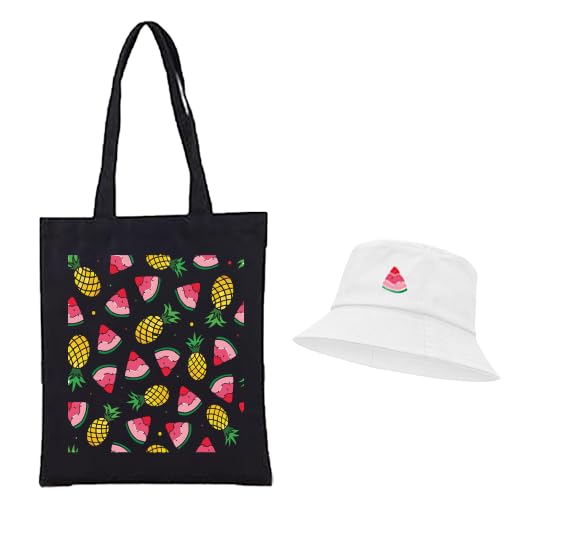 Generic - A set of a tote bag BLACK and a bucket hat WHITE(C) Suitable for trips and summer vacations in distinctive shapes and color