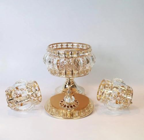 Generic - A Set Of Golden Crystal Snack Storage Box Candy Tray Fruit Bucket Cake Holder Display Tray For Home Decor - 3pcs