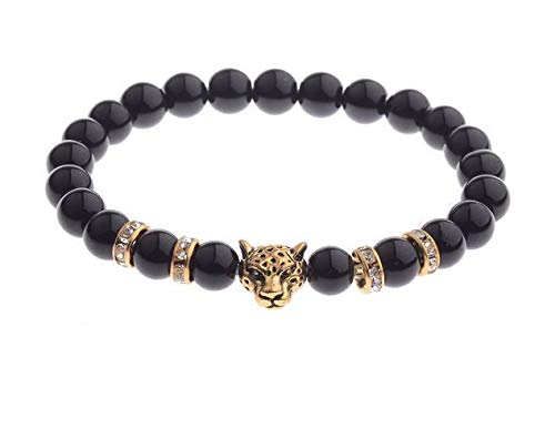 Other - A shiny black bracelet with golden tiger head and crystal spacer - 20 cm