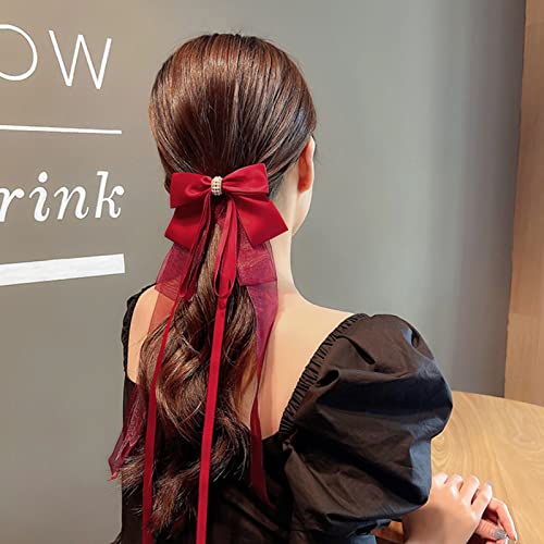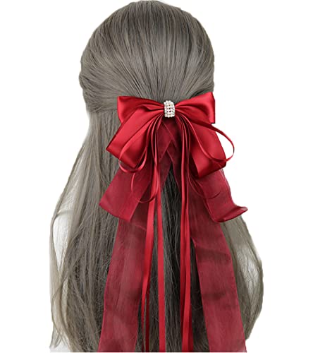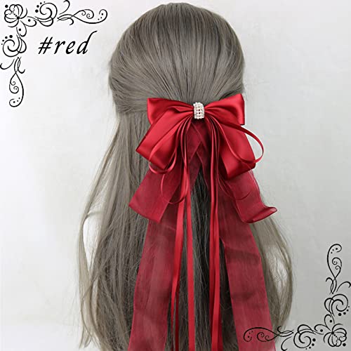 A'sTool - A'sTool Ribbon Hair Ornament, Large Ribbon, Barrette, Hair Accessory, Gothic Lolita, Lace, Hair Access, Dress, Red, Pink, Blue, Black, White, Green (Red)