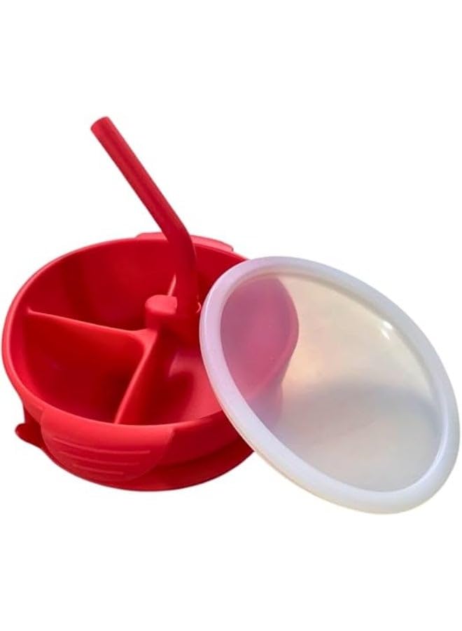 generic - A stylish bowl with a lid and straw, BPA-free, with three separate compartments and a suction base. Lightweight, easy to clean, durable, multi-purpose, and reusable. Suitable for everyday use. Red.