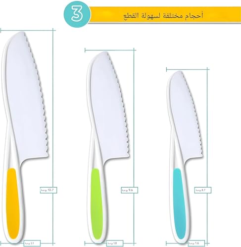 - The lightweight and portable design of the nylon knives makes them convenient for outings and picnics, allowing children to safely assist in meal preparation wherever they go. With no sharp edges to worry about, parents can feel confident letting their kids use these knives. The set includes three sizes (large, medium, and small), catering to different cutting needs and making it easy for children to handle their own kitchen tools.