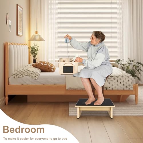 - Safe, portable and comfortable: this wooden step stool is made for convenience and portability with a 450 lbs, it is only 5.5 inches, which is easy to use anywhere in your home for a quick, supportive increase. Suitable for medium height mattresses 14-16 inches, with this as a bedside stool for high bed. This bedside stool is just the right height for you to get into bed