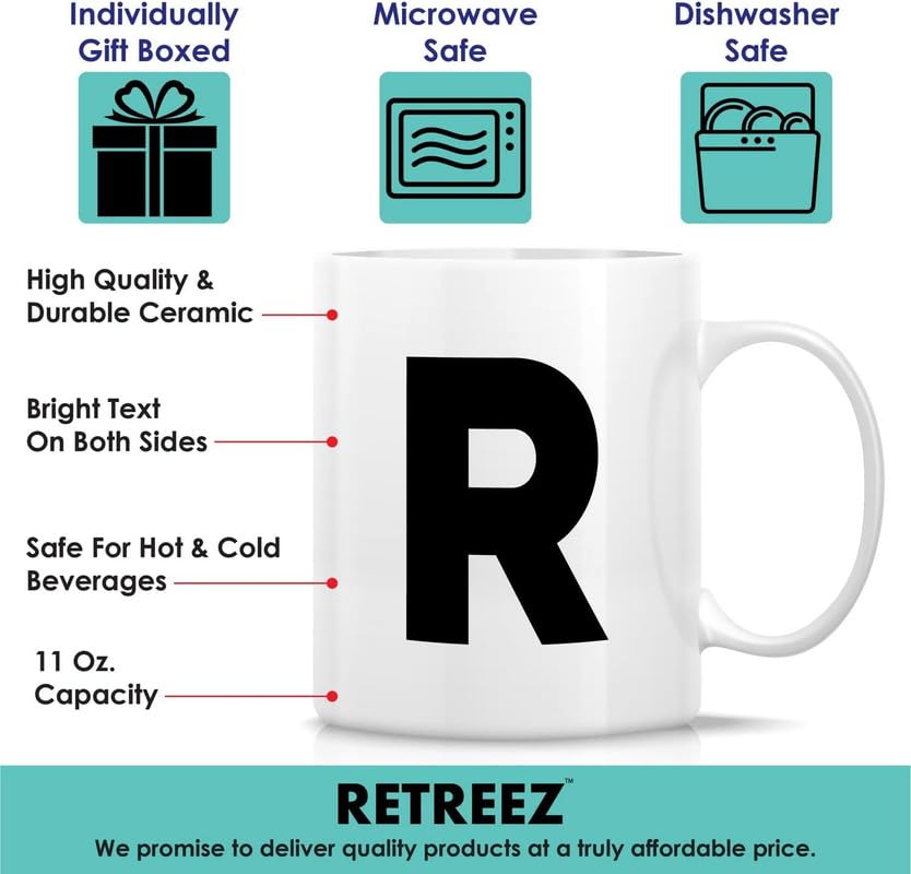 Generic - مج شاي وقهوة من السيراميك المزخرف بالحروف الأبجدية من A-Z، تصميم أنيق يناسب الهدايا في المناسبات المختلفة مثل التخرج، الشكر، وأعياد الميلاد للأصدقاء، الزملاء، الأم، الأب، أو الأخت، بتصميم حرف R