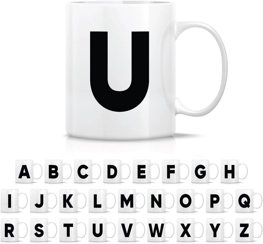 Generic - A-Z Alphabet Monogrammed Monogram Mug Ceramic Tea Coffee Mugs - Graduation Appreciation Thank You Holiday Birthday Gifts for her friend coworker mother father sister - U Initial