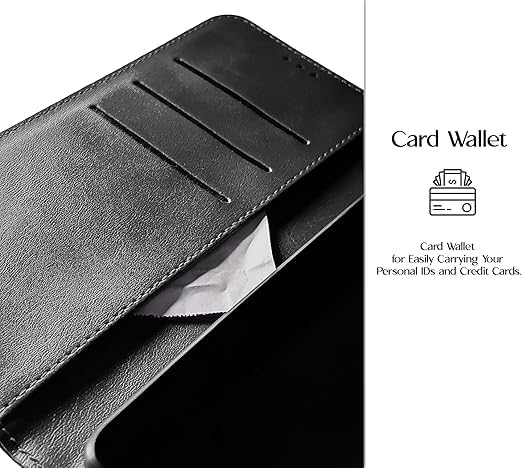 Generic - حافظة حماية جلدية قابلة للطي بفتحة للبطاقات، مزودة بسوار اغلاق مغناطيسي، تتضمن حافظة داخلية من السيليكون والبولي يوريثين الحراري، حماية عالية متوافقة مع اوبو a58 (اسود)