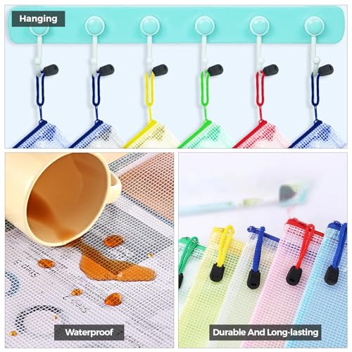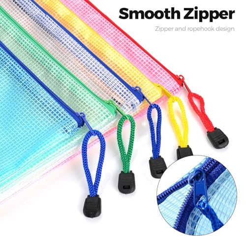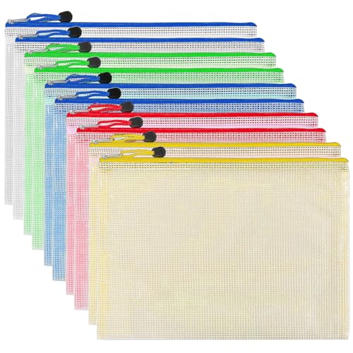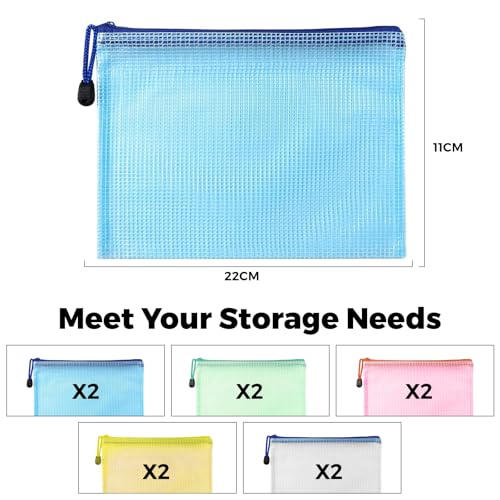 Woobroo - A6 Zipped Document Pouch, 5 Colours PVC Transparent Document Folder, Mesh Zipper Pouch for Travel, Office, Travel, Supplies (10 Pieces)