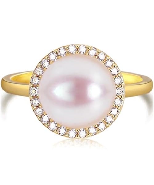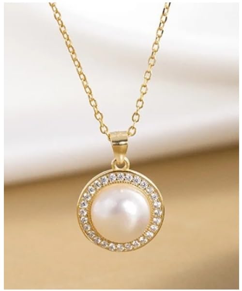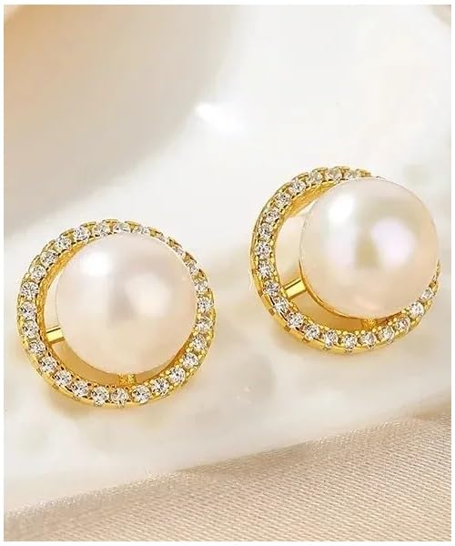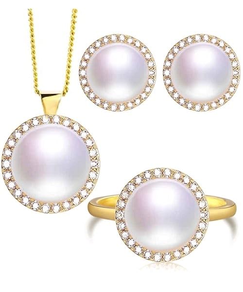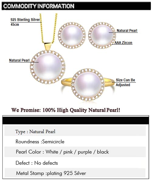 Generic - طقم مجوهرات فاخرة للنساء من من اللؤلؤ الطبيعي النقي معدل نقاء AAAA والفضة الاسترليني عيار 925 مطلي جولد مطعم بالكريستال