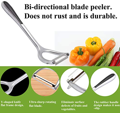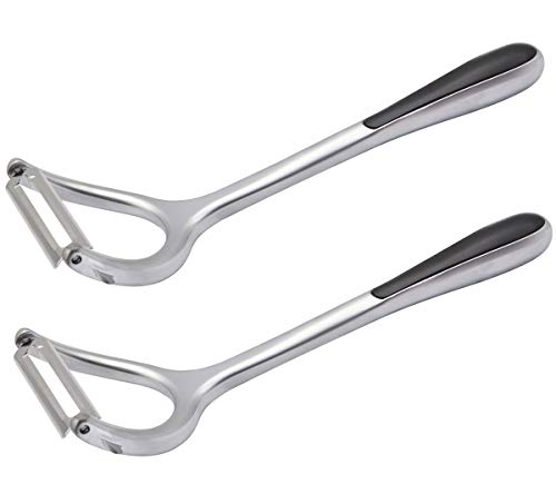 AAOTOKK - مقشرة ستانلس ستيل للمطبخ، مقشرة شكل حرف Y امنة لتقشير التفاح والبرتقال والكمثرى والطماطم والجزر والبطاطس والخيار والفواكه والخضروات من ايه ايه او تي او كيه كيه (شكل Y - شفرة مسطحة)، عبوة من قطعتين