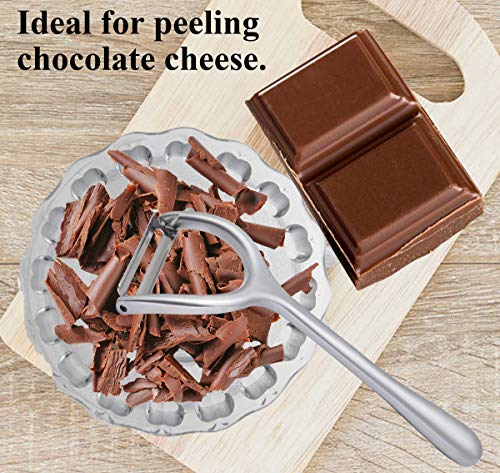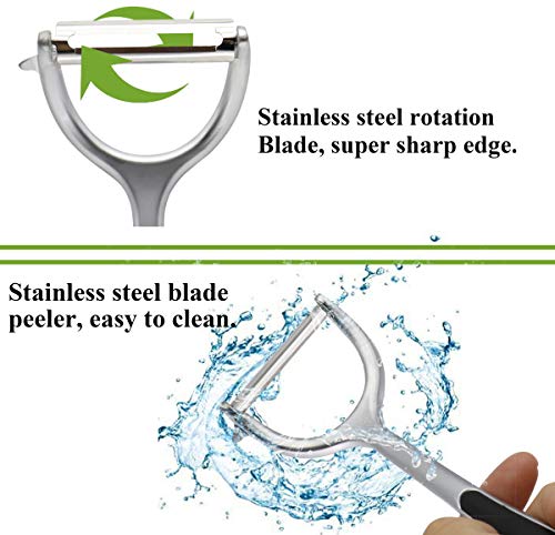 - "تقشير سهل وموفر للوقت: تحافظ الشفرة الحادة من الستانلس ستيل على الحد الأدنى من المقاومة عند التقشير، ملائمة للغاية لتقشير الفواكه أو الخضروات، ولن تسد بالقشور، كما توفر الوقت والجهد! مدمجة مع مزيل عيون البطاطس.