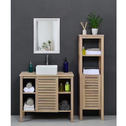 AAZZKANG - مراية حائط بتصميم ريفي بإطار خشب لديكور المنزل الريفي وغرفة النوم والحمام بتصميم مستطيل من ازكانج