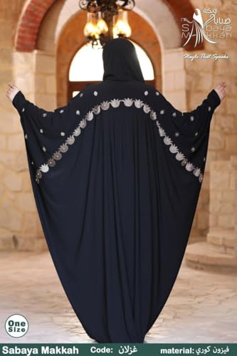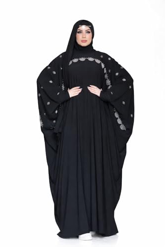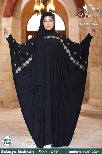 Generic - Abaya, Korean Viscose, One Size up to 130kg, Floral Embroidered Kaftan with Hijab