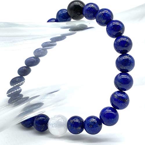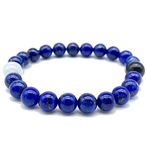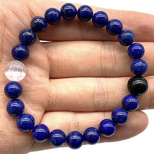 ABC GEMS USA - ايه بي سي جيمز سوار يين يانغ عالي الطاقة - شونجيت كريليان روسي وسيلينيت قوس قزح مغربي حجر لازورد افغانستان دائري ناعم 8 ملم خرز طاقة علاجية ، للنساء