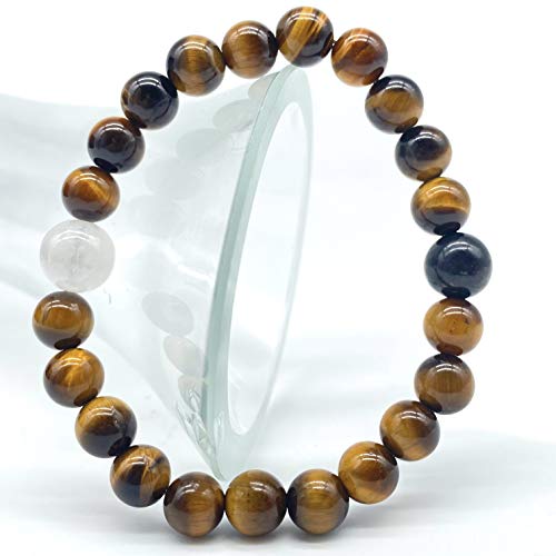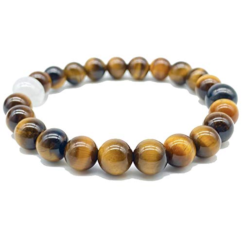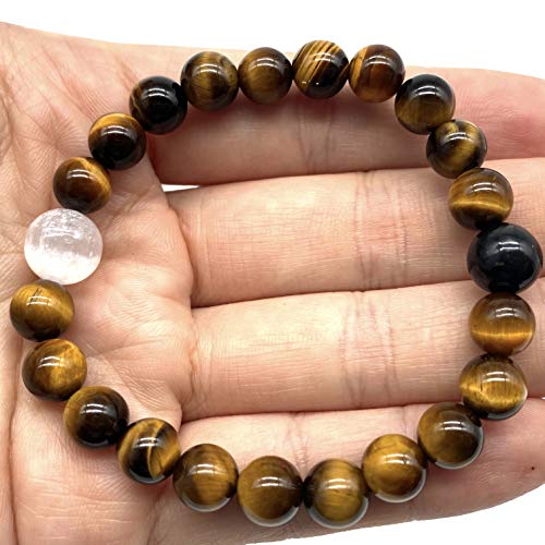 generic - [ايه بي سي جيمز] (سوار يين يانغ عالي الطاقة - شونجيت كريليان روسي وسيلينيت قوس قزح مغربي) عين النمر جنوب افريقيا 8 ملم، خرز طاقة علاجي من الاحجار الكريمة، 8 ملم (1 سوار)، حجر