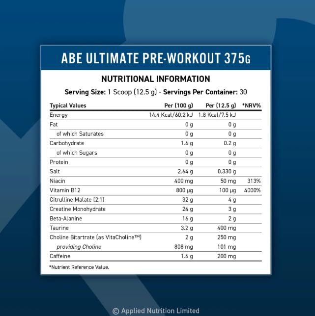 NutraNova Labs - ABE Pre-Workout | Ice Blue Razz Flavor | 30 Servings | Endurance, Focus & Energy Support | Caffeine-Balanced Formula | Non-GMO & Vegan