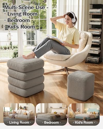 - HEAVY-DUTY SUPPORT & SOFT COMFORT IN ONE: Don’t be fooled by their cozy appearance—these ottomans boast an impressive 440LBS (200kg) weight capacity, easily supporting adults of all sizes for long-term use. Wrapped in soft, plush upholstery, they’re gentle on your feet and body, making them ideal for lazy afternoons, busy mornings, or even as a cozy nook for pets. Sturdy yet comfortable, they’re built to handle the hustle and bustle of daily life.