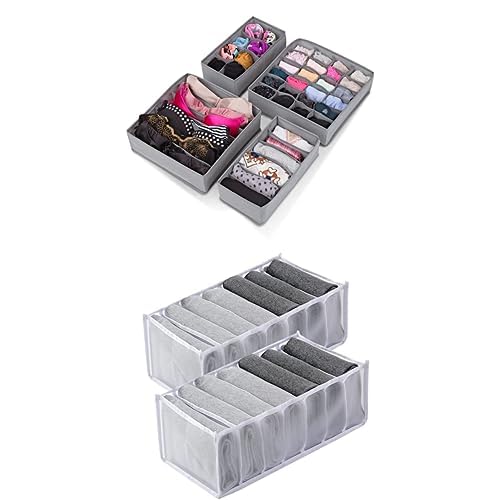ABIN LIVING - مجموعة من منظم ملابس داخلية رمادي + 2 منظم أدراج بفواصل قابل للطي لدولاب الملابس الداخلية من ابين ليفينج