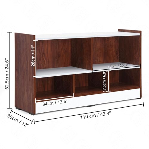 - موفرة للمساحة: وحدة عرض بلمسة نهائية بلون اوك ريد، مصممة للاستخدام المنزلي، وتتميز بـ 5 رفوف عرض مفتوحة، مما يجعلها مثالية لعرض كتبك المفضلة، صور العائلة، المجلات، حامل الكتب، قاعدة الكتب للطاولة، إضاءة القراءة، الفواصل، منظم الكتب، والعناصر الديكورية. يمكن استخدامه أيضًا كوحدة تحكم في الوسائط