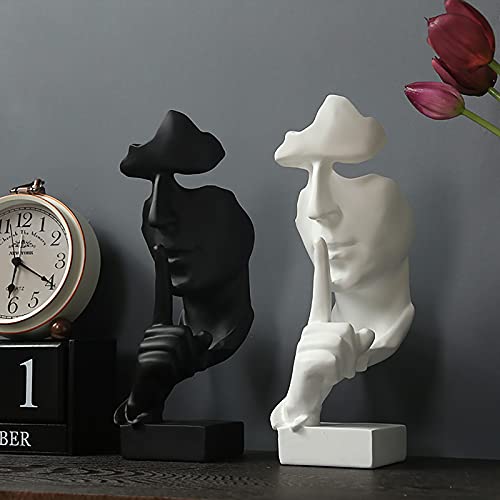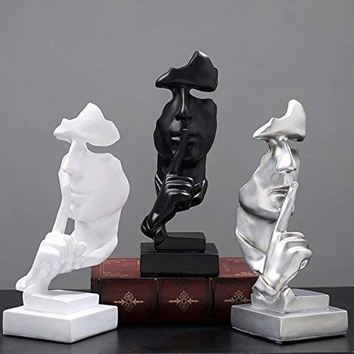 aboxoo - تمثال مفكر منحوت سايلنس از جولد، تمثال فني تجريدي عصري من الراتنج لديكور سطح المكتب والغرفة الابداعية والبيانو والمنزل والمكتب وللدراسة من ابوكسو - لون أسود