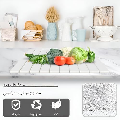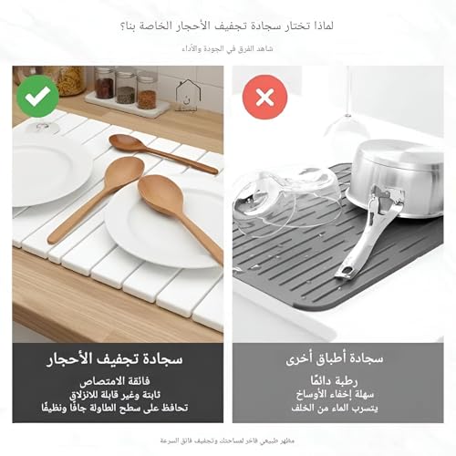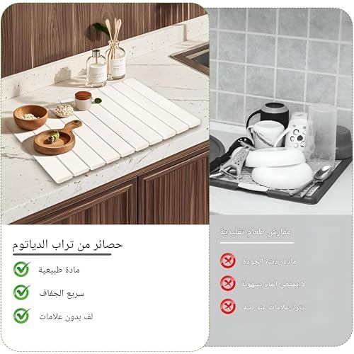 - Crafted from natural diatomaceous earth, this ultra-absorbent mat rapidly wicks away moisture from dishes, glasses, and cutlery, ensuring countertops stay dry and hygienic within seconds of use.