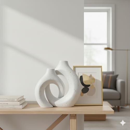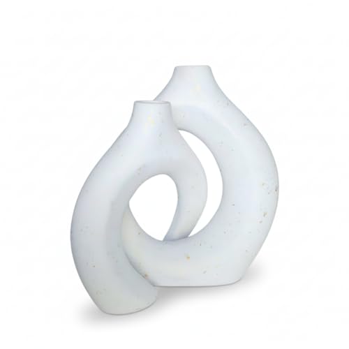 - تصميم عصري: مجموعة من 2 مزهريات منحوتة متشابكة تتميز بتصميم تجريدي معاصر باللون الأبيض الأنيق مع لمسات ذهبية رقيقة