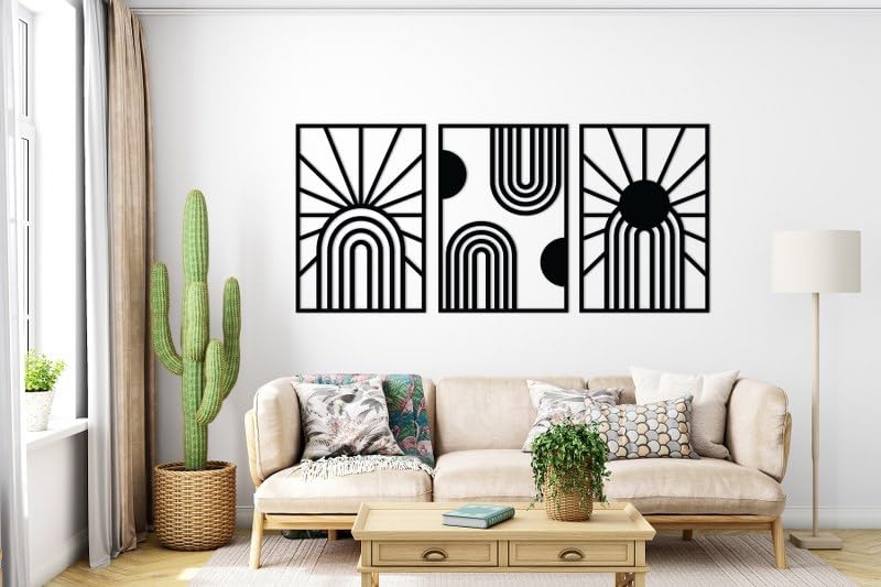 Home Gallery - Abstract Sun and Rainbow Wood Wall Art Set
