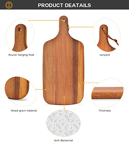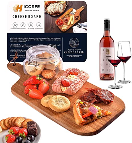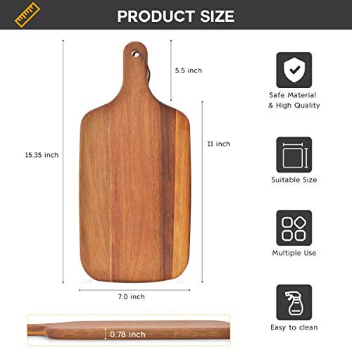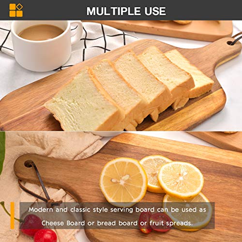 hicorfe - Acacia Wood Bread Board, Wooden Serving Board and Cheese Board, Modern Design with Handle-15.35 x 7 Inch