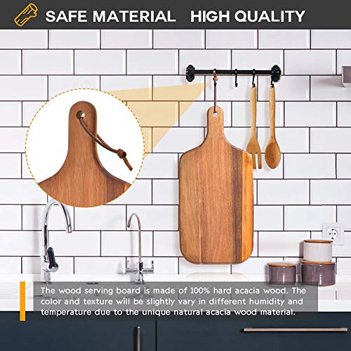 - [Safe Material & High Quality]: The wood serving board is made of 100% hard acacia wood. The color and texture will be slightly vary in different humidity and temperature due to the unique natural acacia wood material.