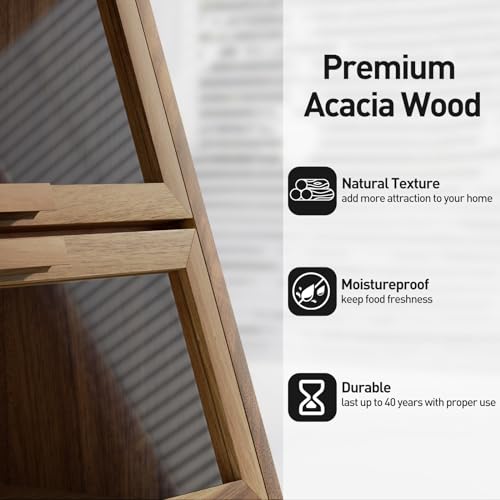 - 【Food Grade Safe Acacia Bread Box】This bread container is made of 100% premium Acacia wood, with beautiful wood texture, food grade safe and can keep bread tasty and fresh for longer time. The Acacia wood is 1.5cm thick which is durable and will not deform easily. This is a long last bread box that can accompany you through happy family time.