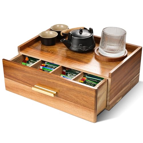 Stackoria - Acacia Wood Tea Bag Organizer,Tea Organizers and Storage Box with Drawer,Tea Caddy for Tea Bag Storage,Tea Station Chest for Countertop