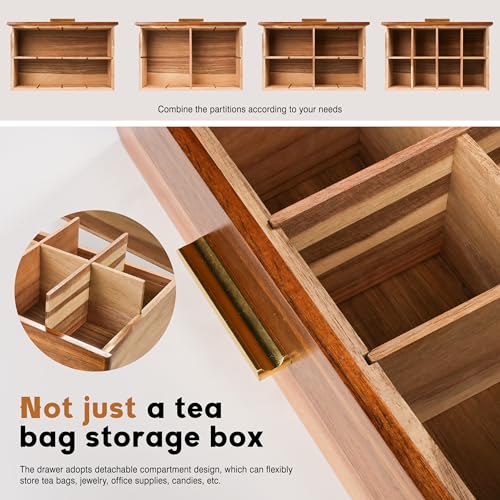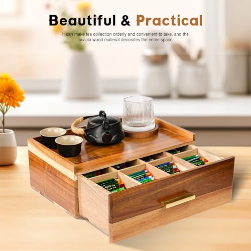 - Quality Craftsmanship: Made from premium acacia wood, this tea drawer organizer showcases natural grains and is built to last, ensuring durability and elegance that enhances any kitchen or dining area