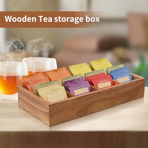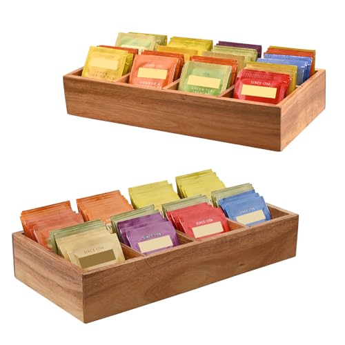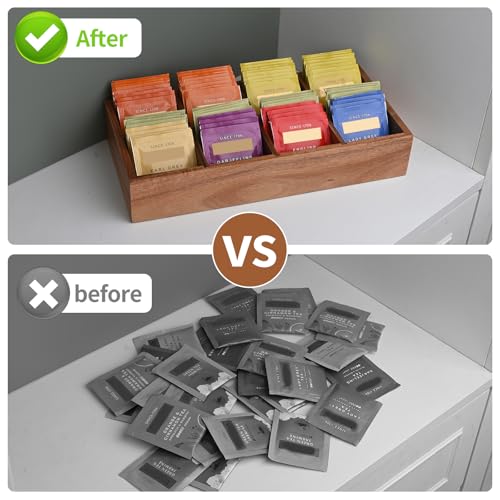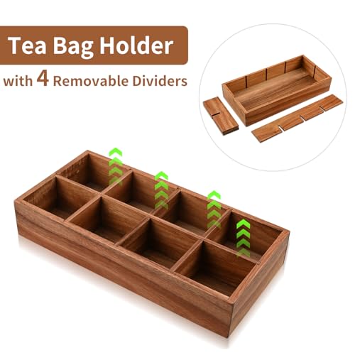 Chicvilla - منظم اكياس الشاي من خشب الاكاسيا مع 8 فتحات - حامل اكياس الشاي ومنظم الشاي، تخزين عبوات السكر لسطح الطاولة (2)