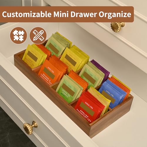- حل تخزين الشاي: يحتوي صندوق تخزين الشاي هذا على 8 أقسام، مما يجعل من السهل فرز وتحديد مواقع نكهات الشاي المختلفة، مما يتيح لك معرفة متى يحين وقت التجديد. يتيح التصميم المدمج للمنظم وضعه بشكل مريح في الدرج، مما يوفر جميع خيارات الشاي الخاصة بك في لحظة.