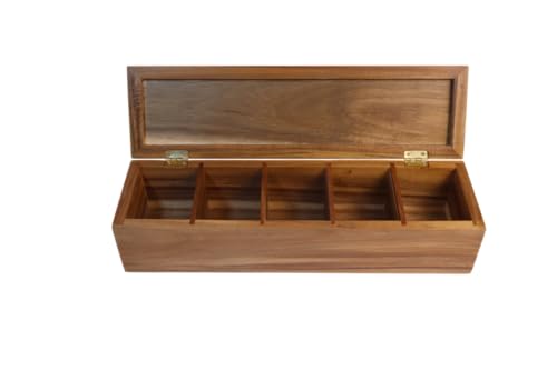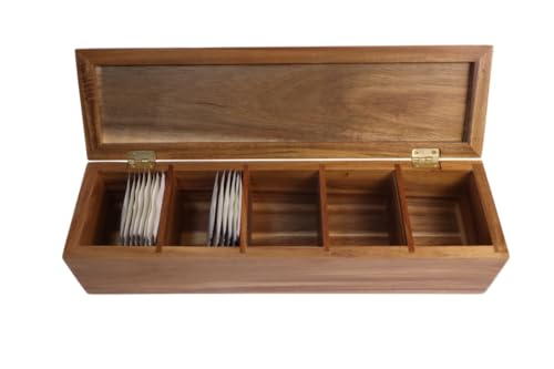 KASABLANKA - Acacia Wood Tea Box with Lid, Tea Bag Organizer, Minimalist, Compact and Multifunctional, Storage Box for Tisanas