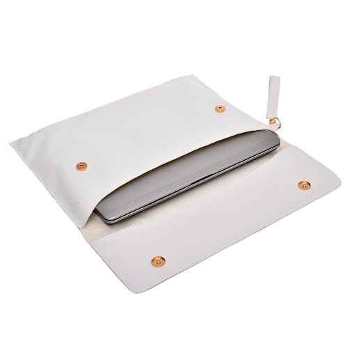 Accelerate - Accelerate Embossed White Leather Protective 15-15.6 inch Premium Laptop Sleeve Case with Magnetic Snap Clasps and Removable Strap | Slim Design Laptop Bag compatible with MacBooks and Laptops