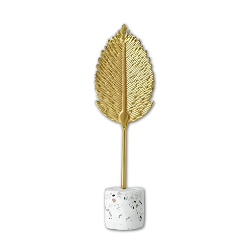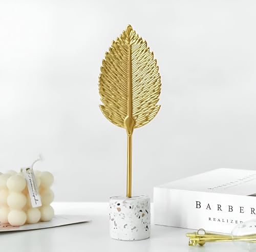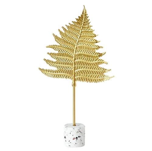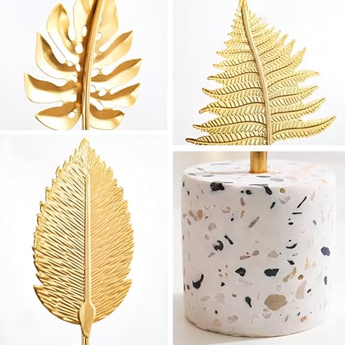 - This decorative piece is supported by a flat and sturdy cylindrical marble base that ensures stability and prevents tipping. The mix of solid marble with golden iron leaves reflects a Nordic-inspired minimalist style, highlighting both simplicity and sophistication in any decorative arrangement.