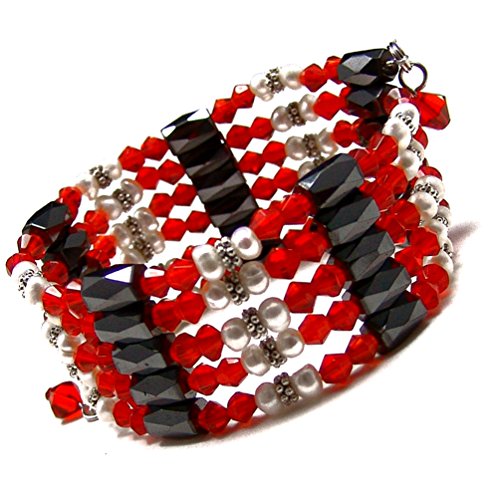 Accents Kingdom - Accents Kingdom 36" Magnetic Hematite Therapy & Healing Stone with Cultured Pearl & Crystal Bead Necklace,Bracelet,Anklet,Lariat